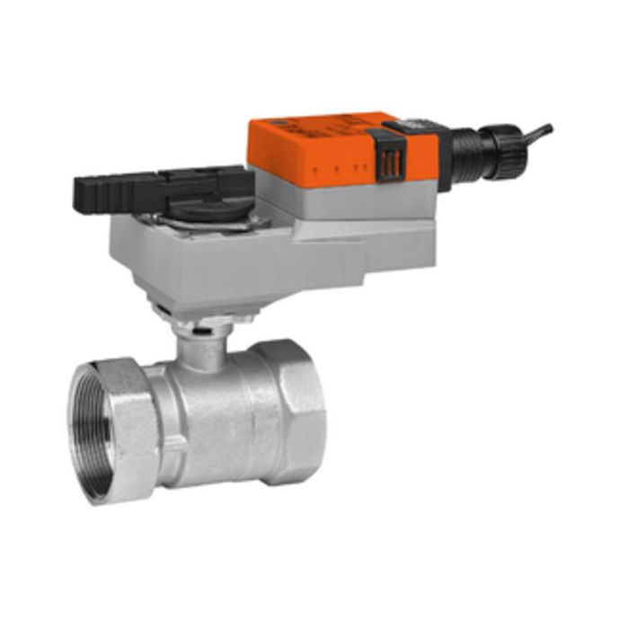 Characterized Control Valve, Forged Brass, Nickel Plated Brass Body, Stainless Steel Ball And Stem, Direct Coupled Actuator, 180 in-lb, Modulating, Non-Spring Return, 24 VAC, For 2 To 10 VDC Or 4 To 20 mA Control Signal.
